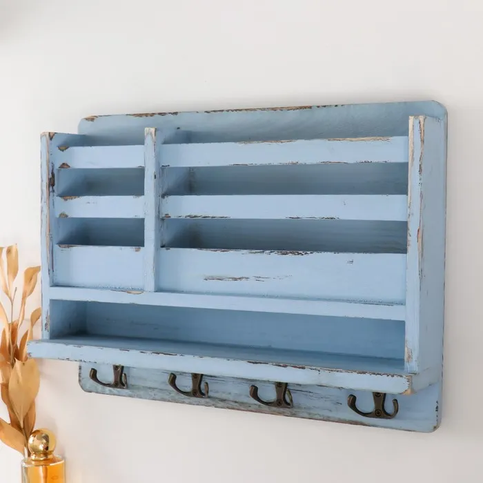 Настенные крючки декоративные с карманом и полочкой «Серый состаренный», дерево, 8.5×38×28 см — Характеристики