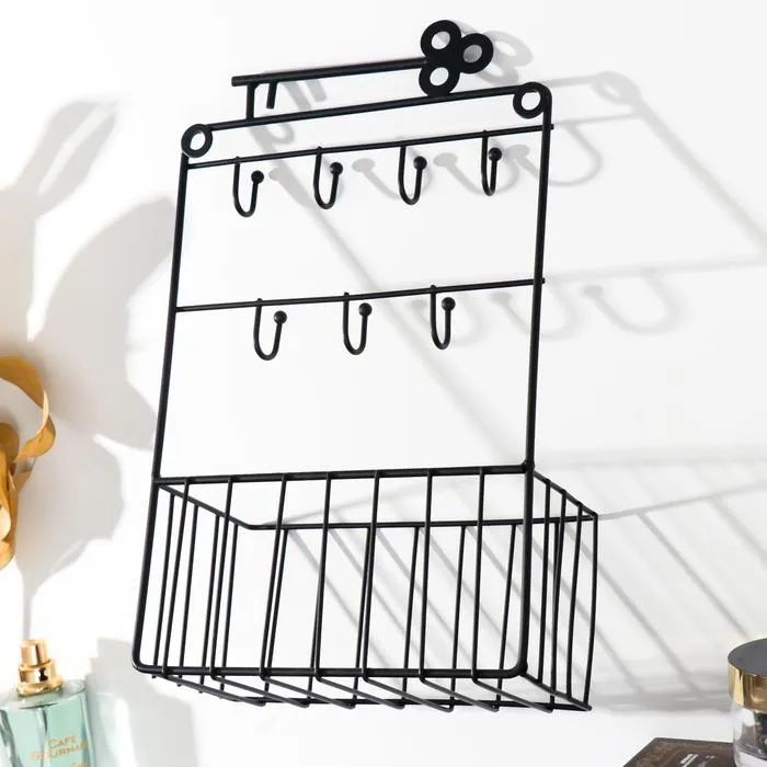Настенные крючки декоративные с полочкой «Ключик», металл, чёрный 28×9×17.5 см — Характеристики