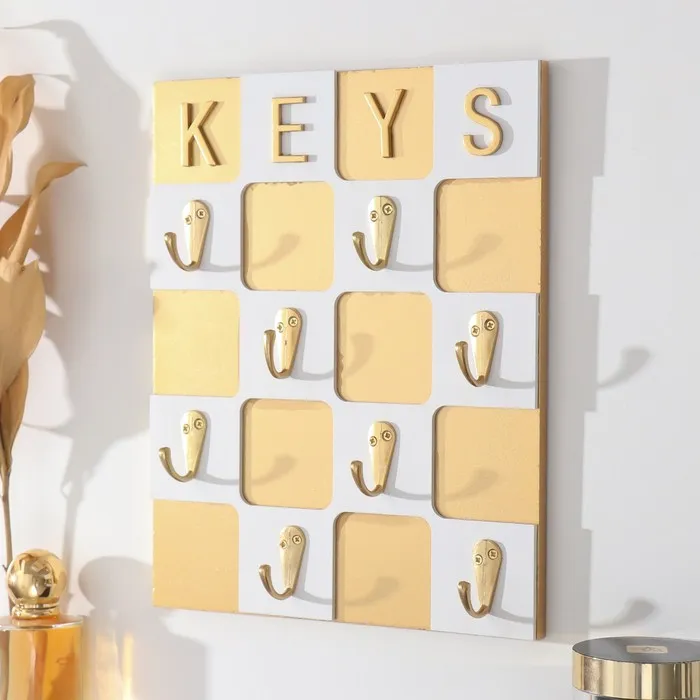 Настенные крючки декоративные «Шахматная доска», дерево, бело-золотая, 20×3×25 см — Характеристики