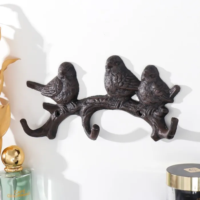Настенные крючки декоративные «Три птички на ветке», чугун, 21.5×10×3 см — Характеристики