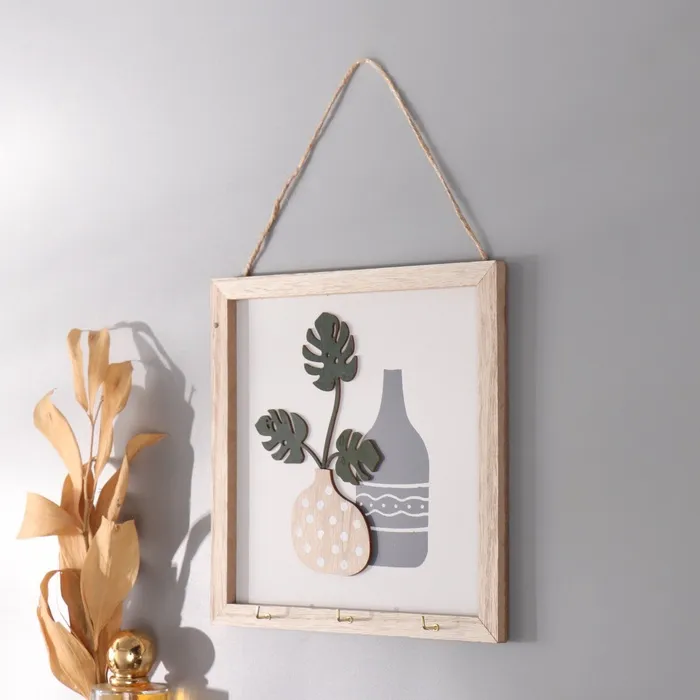 Настенные крючки декоративные «Ветки монстеры и две вазы», дерево, 2.5×20×20 см — Характеристики