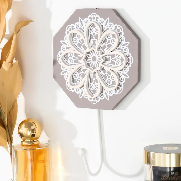 Настенный крючок декоративный «Ажурный цветок. Восьмигранник», дерево, 11.6×0.7×20 см — Характеристики