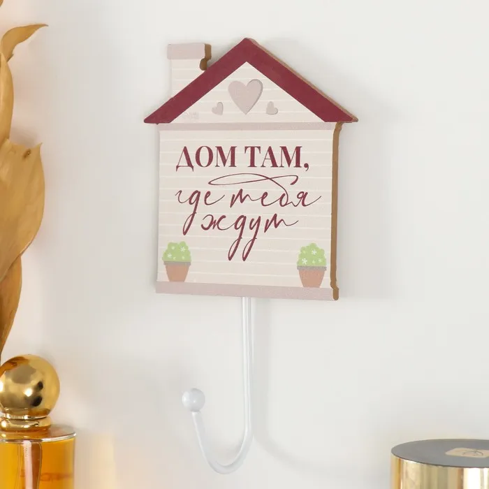 Настенный крючок декоративный «Дом там, где тебя ждут», дерево, 10×11 см — Характеристики
