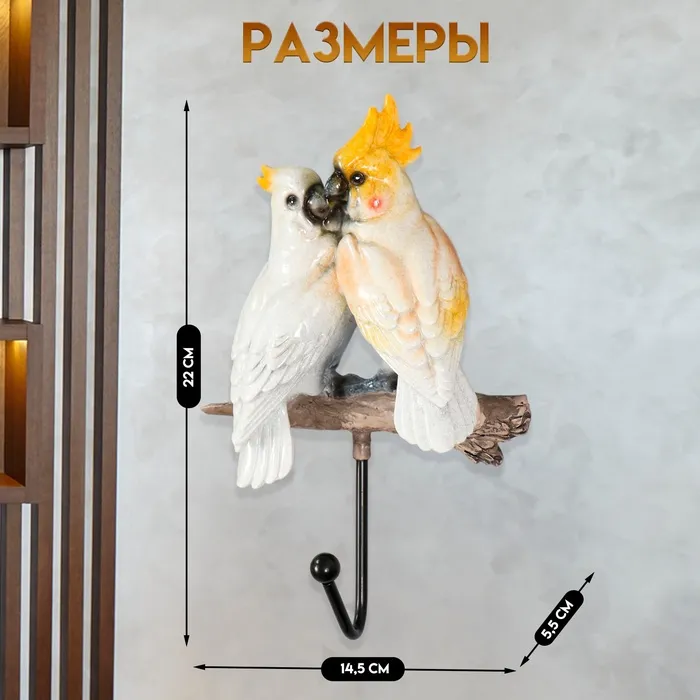 Настенный крючок декоративный «Два какаду», полистоун, лак,14.5×5.5×22 см — Характеристики
