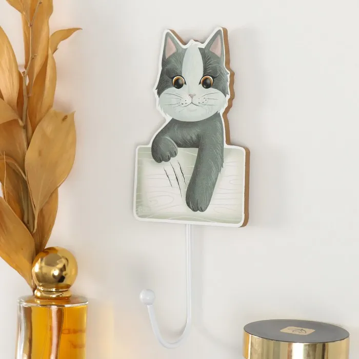 Настенный крючок декоративный «Котик-царапка», дерево, 8×12 см — Характеристики