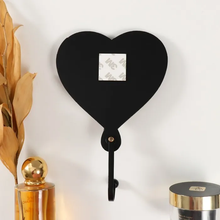 Настенный крючок декоративный «Сердце с листьями», дерево, чёрный, зеркальный 4.3×12.4×19 см — Характеристики