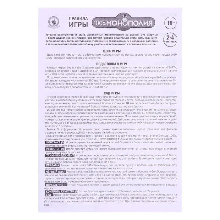 Настольная экономическая игра «100%Монополия», 2-4 игрока, 10+ — Характеристики