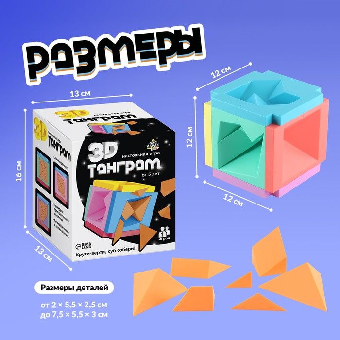 Настольная игра «3D-танграм» рекомендована для детей от 5 лет. Рассчитана на 1 игрока.