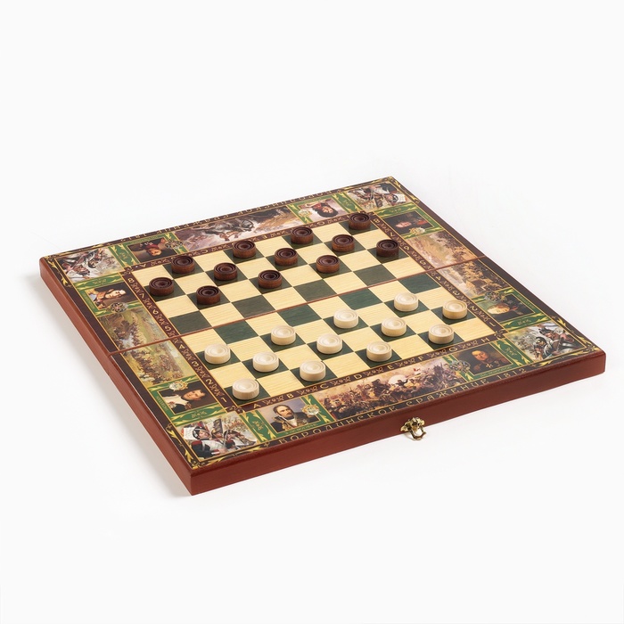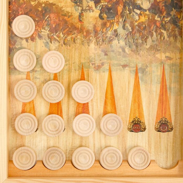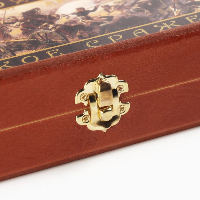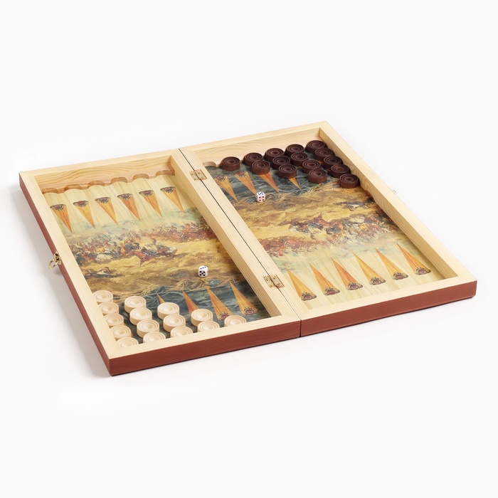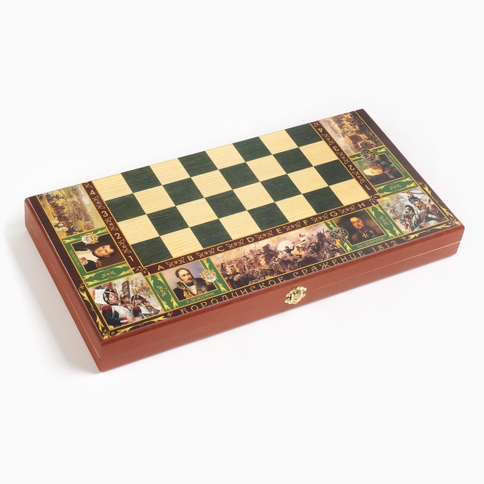 Деревянная лакированная доска из качественных пиломатериалов представляет собой кейс из березовой фанеры и хвойных пород дерева с металлической фурнитурой. Размер в разложенном виде 50 х 50 см. Внешняя сторона кейса - игровое поле для игры в шахматы или шашки, внутренняя часть кейса - игровое поле для игры в нарды. Принт нанесенный на доску подчеркивает стиль и придаёт яркость изделию. Доска имеет аккуратную и надежную фурнитуру и вместительный отсек для хранения.