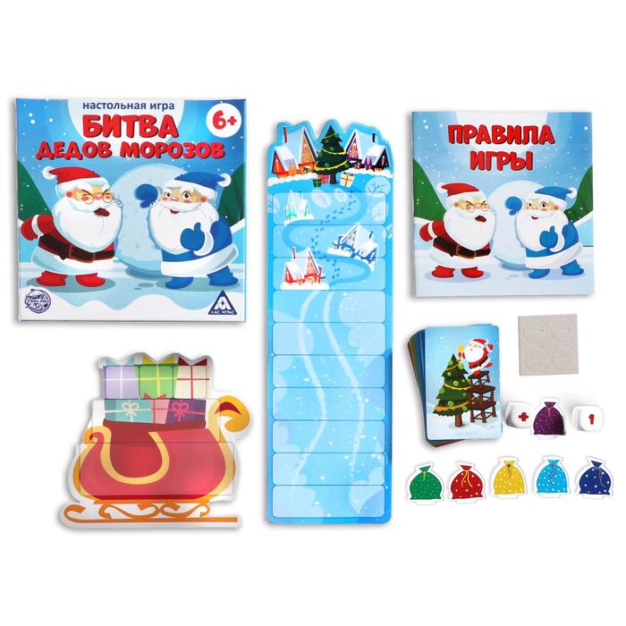 Всего в игре вас ждёт два поля: сани, в которых будут стоять ваши мешки с подарками; и поле пути, по которому мешки будут двигаться к городу. Каждый участник выбирает себе две фишки мешка с подарками и ставит их на нижний ярус саней.