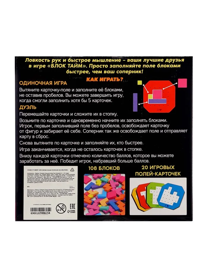 «БлокТайм» помогает развить внимательность, усидчивость и гибкость мышления. Это не просто развлечение, а тренажер для мозга, который увлекает на часы. Отличный подарок для детей и любителей головоломок!