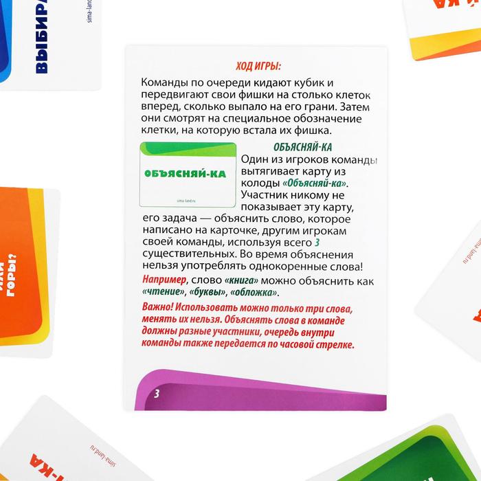 Игрокам придется объяснять слова своей команде, разговаривать устами ребёнка, угадывать, что написано на карте и многое другое.