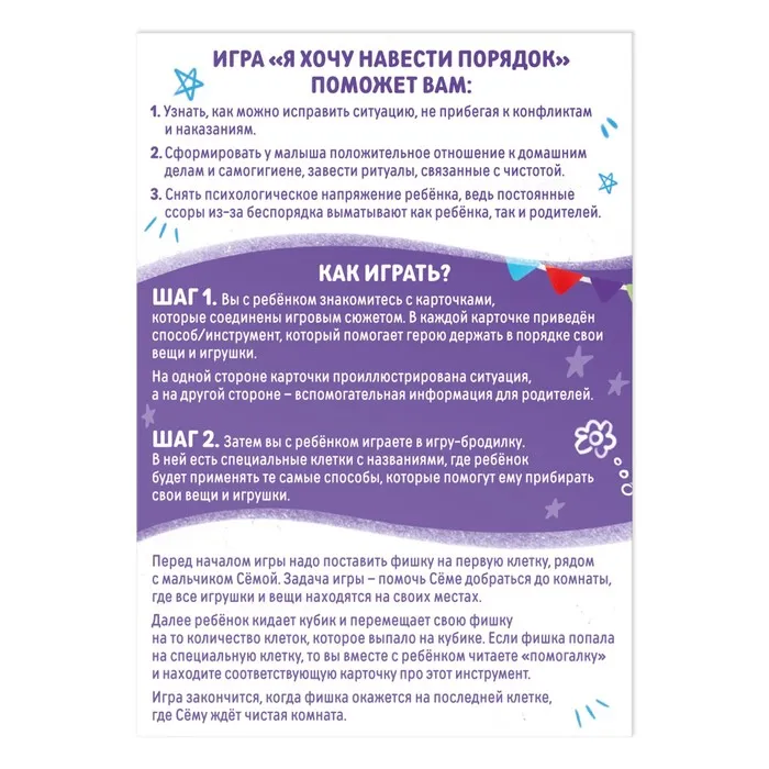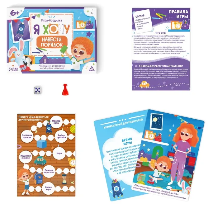 Настольная игра бродилка «Я хочу навести порядок», 15 карт, кубик, фишка, 6+ — Характеристики
