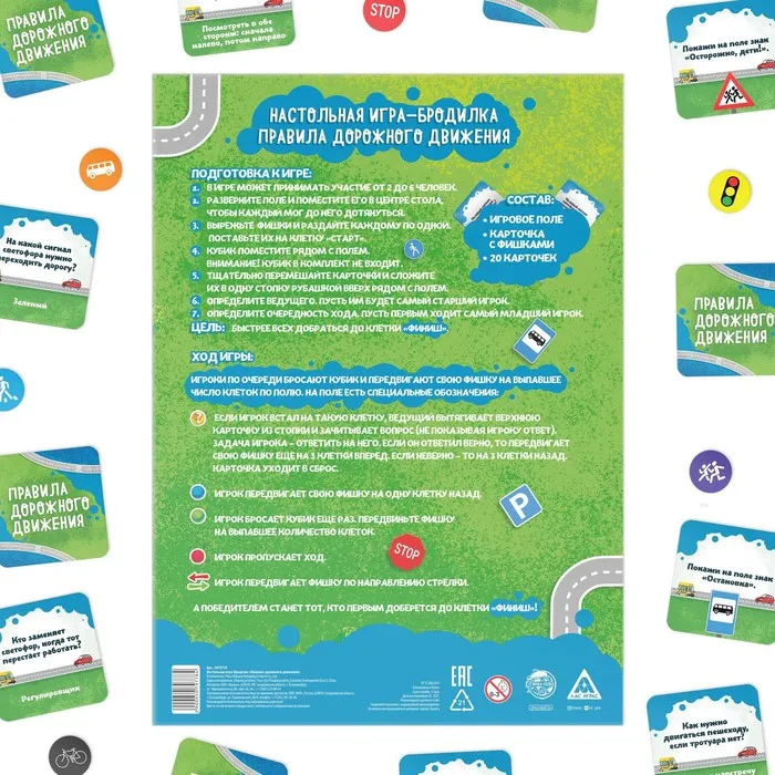 Настольная игра-бродилка «Правила дорожного движения», игровое поле, 6 фишек, 20 карт, 4+ — Характеристики