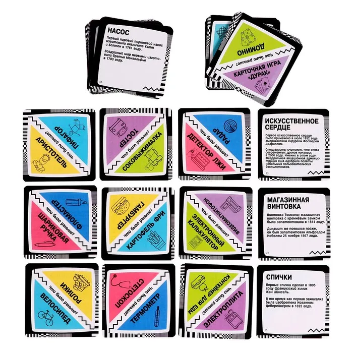 Проверьте знание истории в настольной игре «Что было раньше?»! Уверены, что насос изобрели до воздушного шара? Тогда скорее делайте ставку и продвигайтесь к финишу! Не знаете правильный ответ? Доверьтесь интуиции!