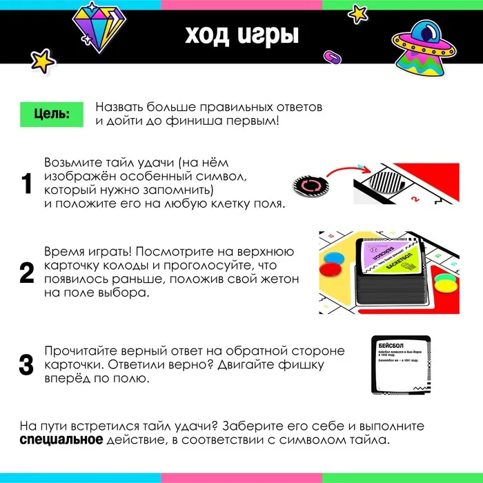 Задача каждого игрока — назвать больше всех правильных ответов и первым дойти до финиша.
