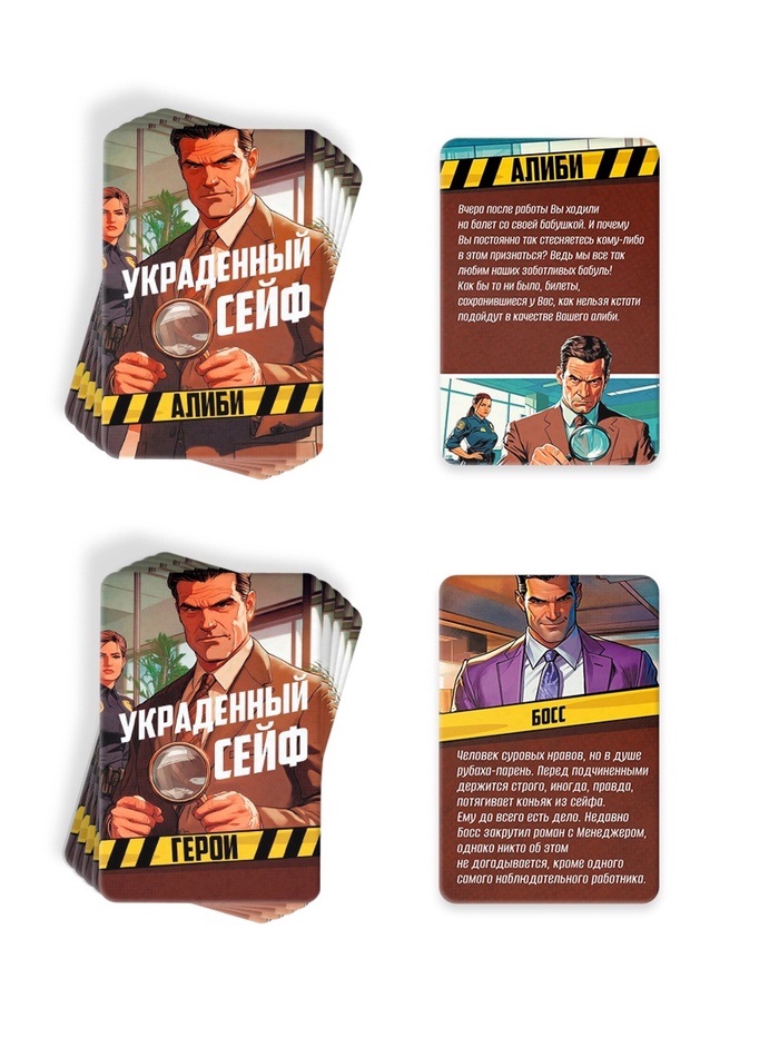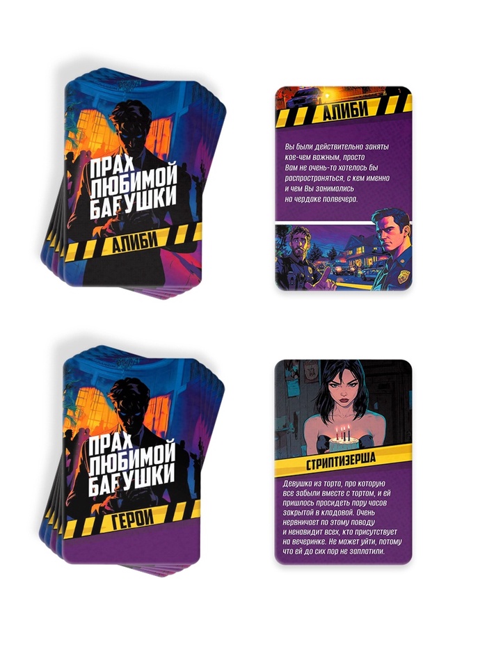 - Карточки «Алиби» - ее вы получаете вместе с карточкой героя, она может оправдать вас или, наоборот, сделать преступником