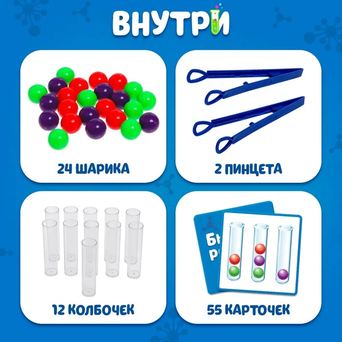 - Выполняйте задание, перекатывая шарики из одной пробирки в другую, не затрагивая их руками.
