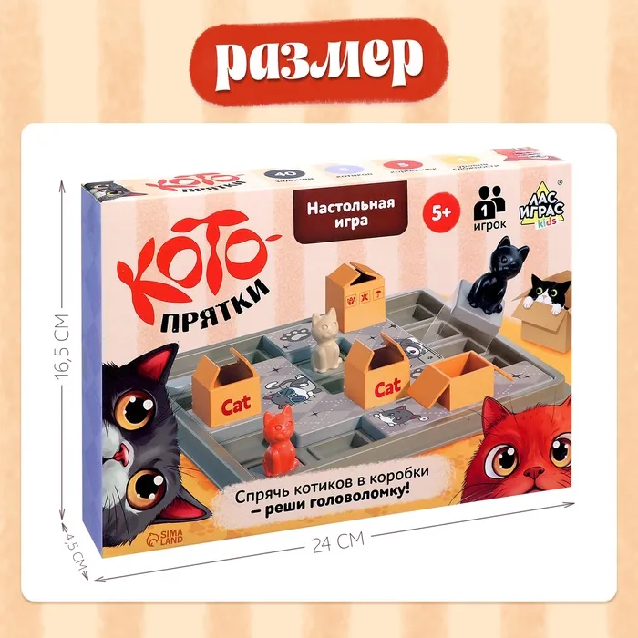 Настольная игра для детей на логику «Котопрятки», головоломка, 1 игрок, 5+ — Характеристики