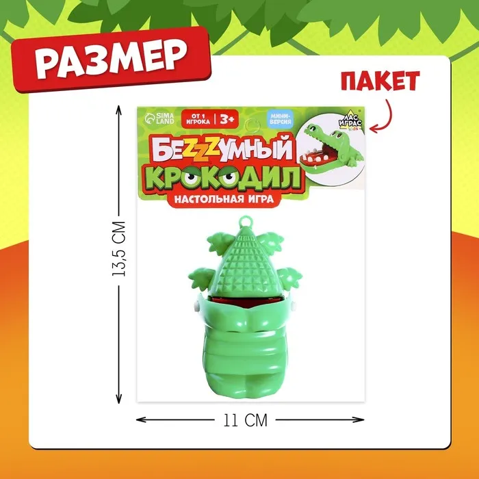 Безумный крокодил. Мини-версия» — настольная игра для детей от 3 лет. В этой игре малышу предстоит проявить реакцию и ловкость, чтобы не попасть в зубы грозного хищника. Увлекательная настолка с первых минут увлечёт непоседу и поможет весело и с пользой провести время.