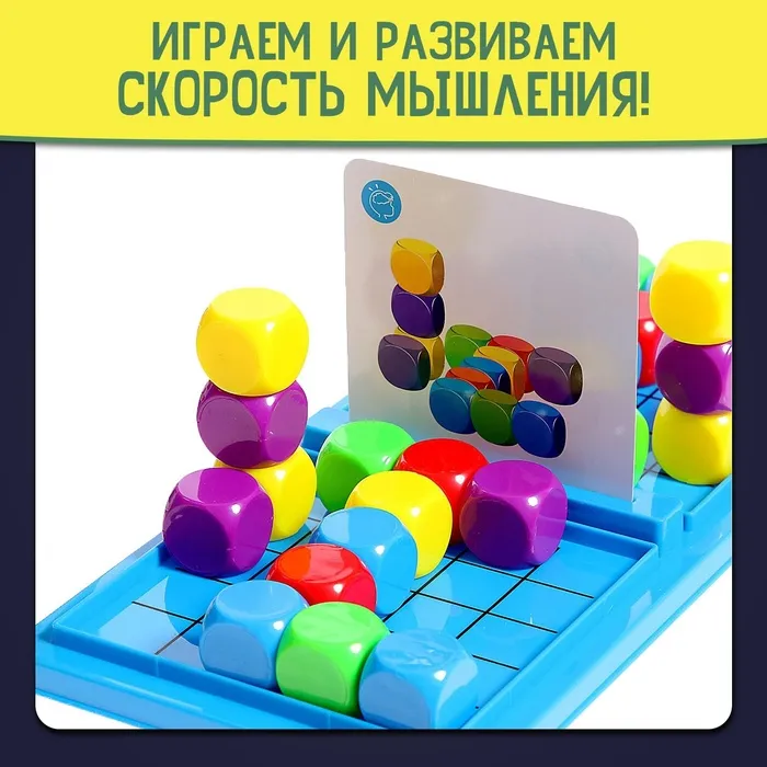 - Задача игроков — как можно быстрее расставить кубики на своей стороне игрового поля так, чтобы положение и цвет каждого кубика соответствовали заданию на картинке.
