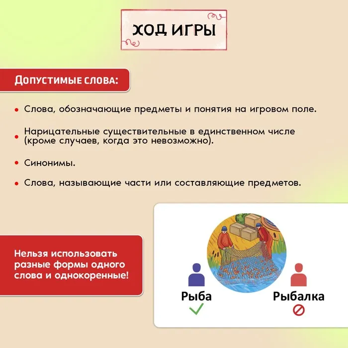 - Последний участник, который нашёл слово, побеждает в раунде и берёт 1 жетон.