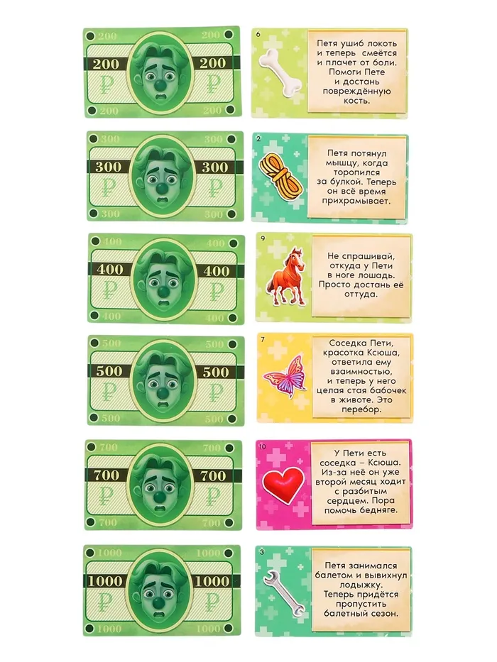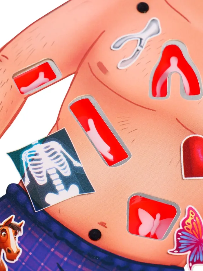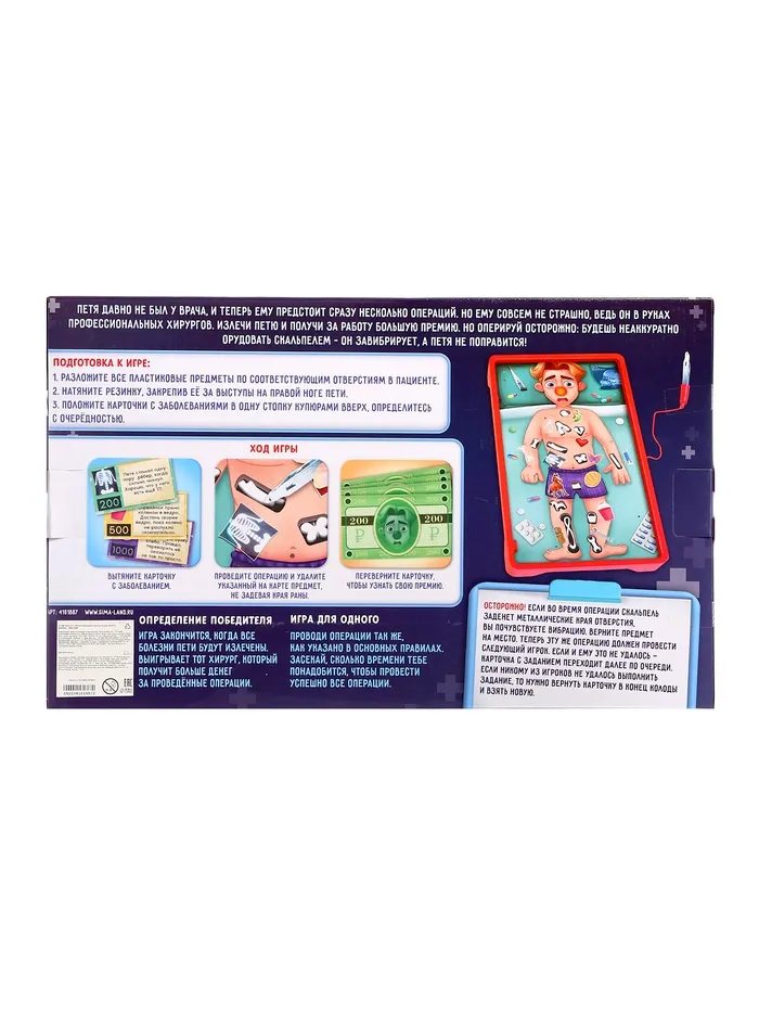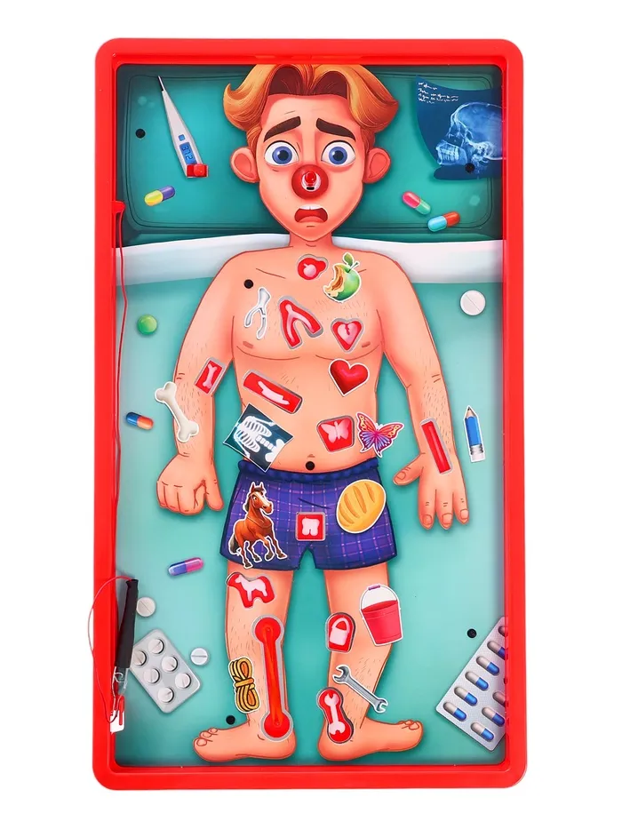 «Весёлая анатомия» — настольная игра для детей от 5 лет. Малыш представит себя в роли хирурга и проведёт сложнейшую операцию. Неуклюжий мальчик Петя попал в неприятности и оказался в больнице на операционном столе. Игрокам предстоит вылечить непоседу, проявив осторожность и внимание.