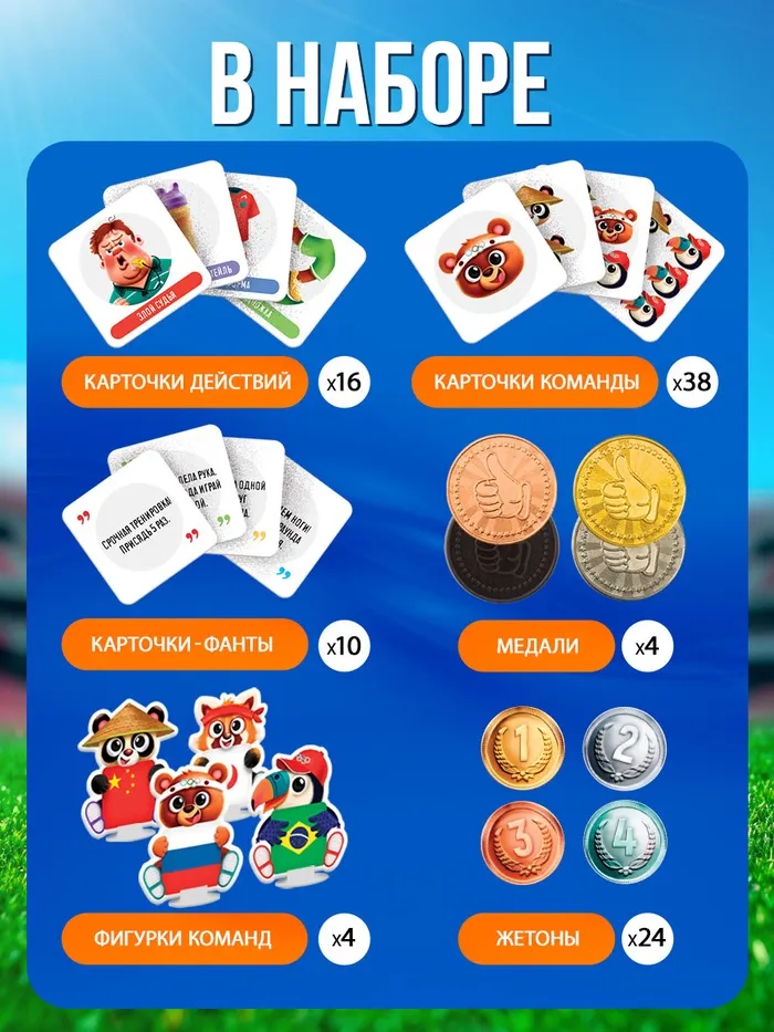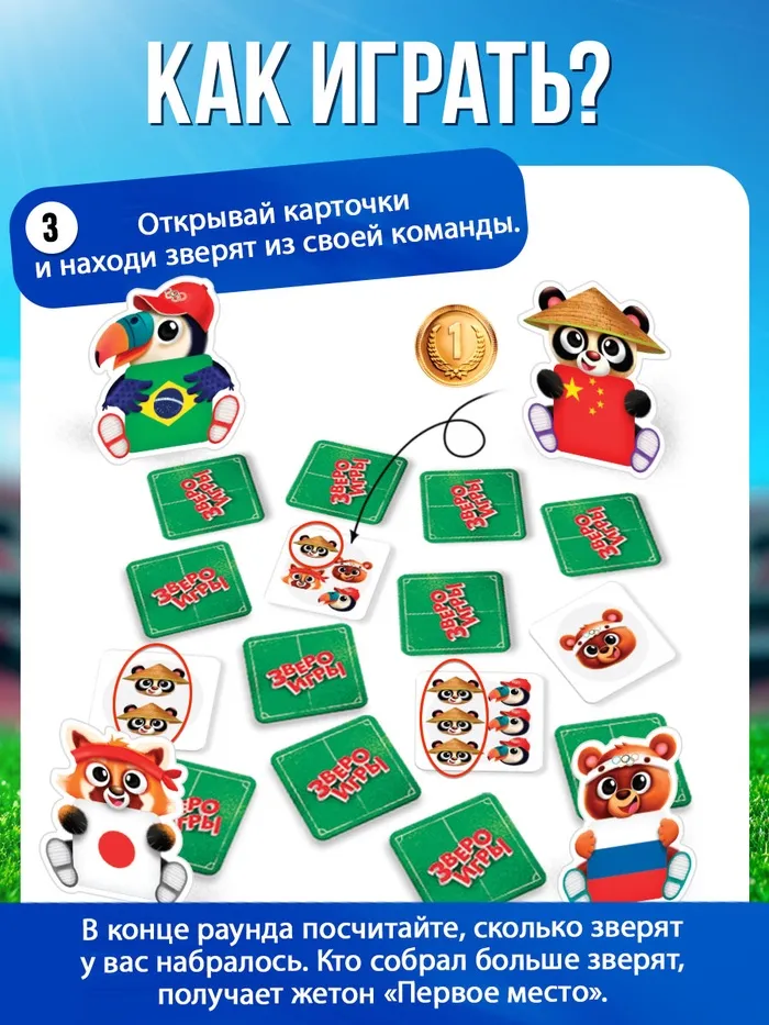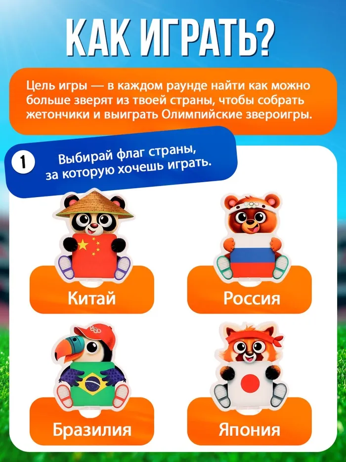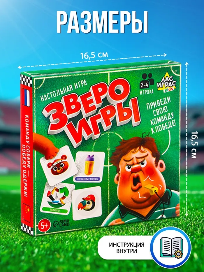 «Звероигры» — настольная игра для детей от 5 лет. Добро пожаловать на увлекательные олимпийские игры среди самых ловких жителей волшебного леса. Малышу предстоит выступить в роли тренера и помочь пушистым непоседам добиться успеха и стать опытными спортсменами.