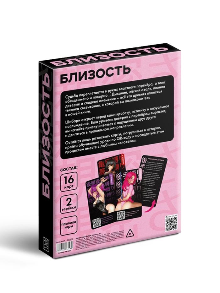 Приглушите свет, разложите карты, достаньте верёвки и погрузитесь в игру «Шибари. Близость». Эта игра создана для тех, кто готов выйти за рамки привычного и открыть новые грани отношений!