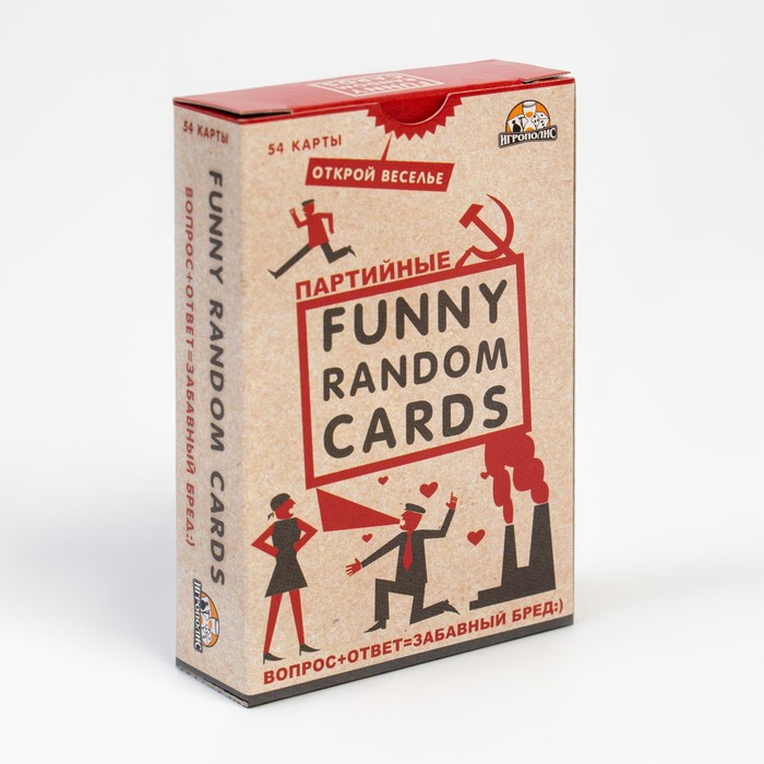 Игрок тянет карточку с веселым вопросом из одной колоды, а второй участник тянет карточку с ответом из другой. Полученные уморительные комбинации могут довести до истерического смеха даже самых серьезных академиков. Простота правил Funny Random Cards гарантируют быстрое погружение в игру, незабываемое времяпрепровождение и море смеха!