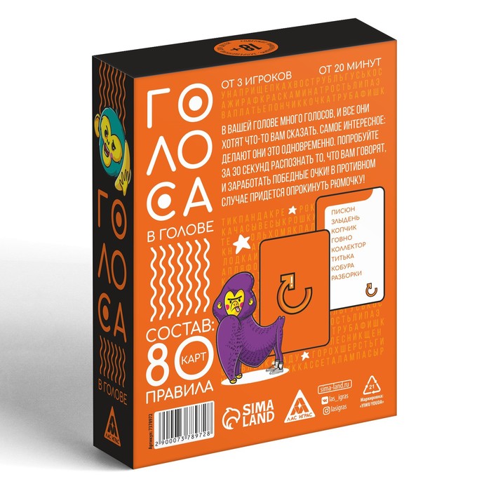 В вашей голове много голосов, и все они хотят что-то вам сказать. А самое интересное: делают они это одновременно. Попробуйте за 30 секунд распознать то, что вам говорят, и получите победные очки. В противном случае придётся опрокинуть рюмочку!