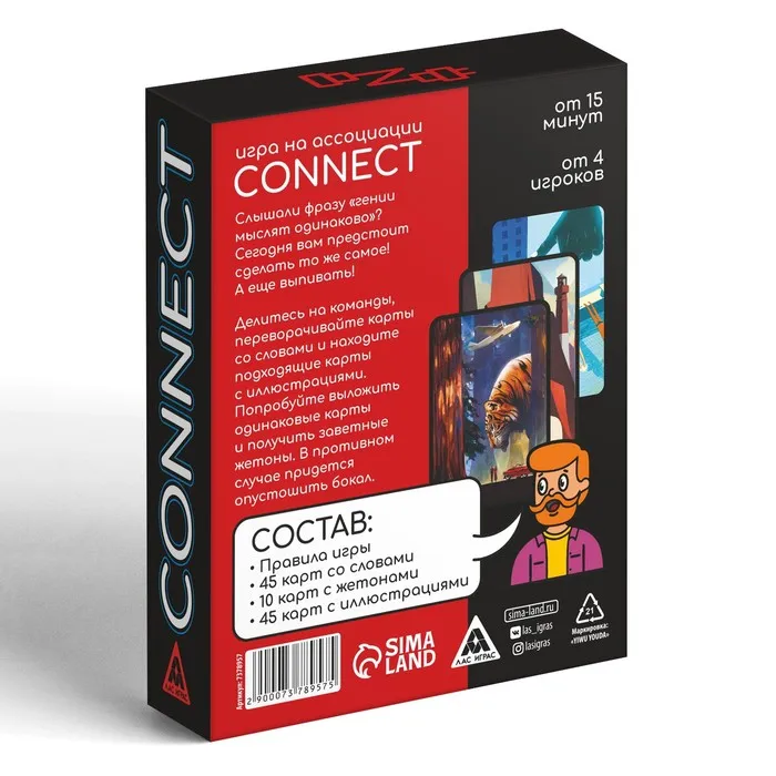Слышали фразу «гении мыслят одинаково»? Просто они удачно синхронизировались. Сегодня вам предстоит сделать то же самое! Делитесь на команды, переворачивайте карты со словами и выкладывайте подходящие карты с иллюстрациями. Попробуйте выложить одинаковые карты и получить заветный жетон.