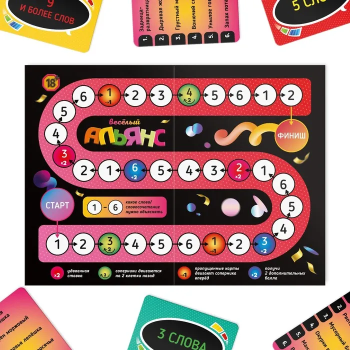 А чтобы сделать игру ещё интереснее и добавить нотку азарта, используйте карты ставок. Перед ходом другой команды (или игрока) пытайтесь предсказать, сколько слов или словосочетаний сможет объяснить команда или игрок. Если ставка сыграла, получайте дополнительные баллы.