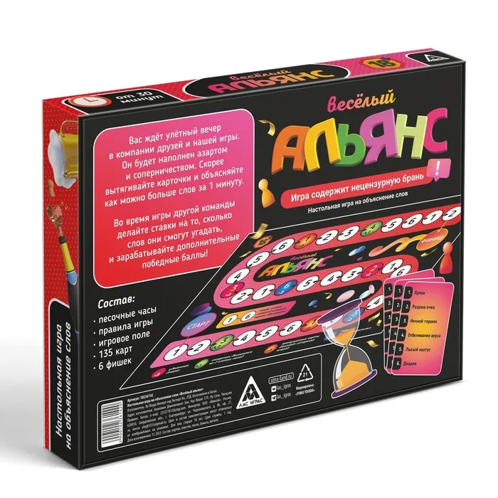 Вас ждёт улётный вечер в компании друзей и нашей игры. Он будет наполнен азартом и соперничеством. Скорее вытягивайте карточки, объясняйте как можно больше слов за 1 минуту. Во время игры другой команды делайте ставки на то, сколько слов они смогут угадать, и зарабатывайте дополнительные победные баллы!