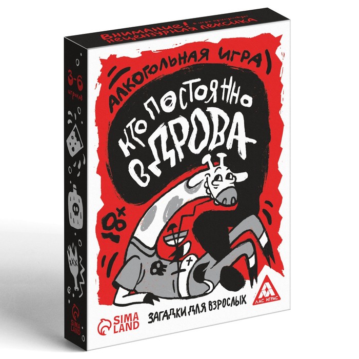 В игре есть алкогольные карты с вопросами – «Кто бухает как свинья?» и «Кто бухает как киты?»