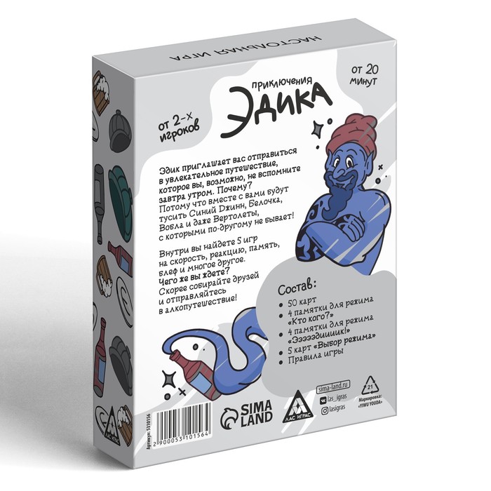 Настольная игра для взрослых «Приключения Эдика», 63 карты, 18+ — Характеристики