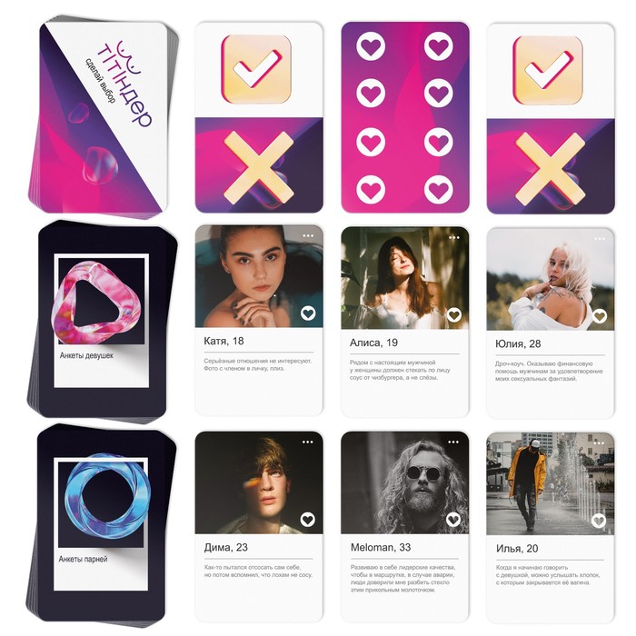 Ни разу не сидели на сайтах знакомств? Поздравляем, вы зарегистрированы в нашем приложении «Титиндер»! Вас ждёт увлекательное времяпровождение в компании раскрепощенных девушек и парней.