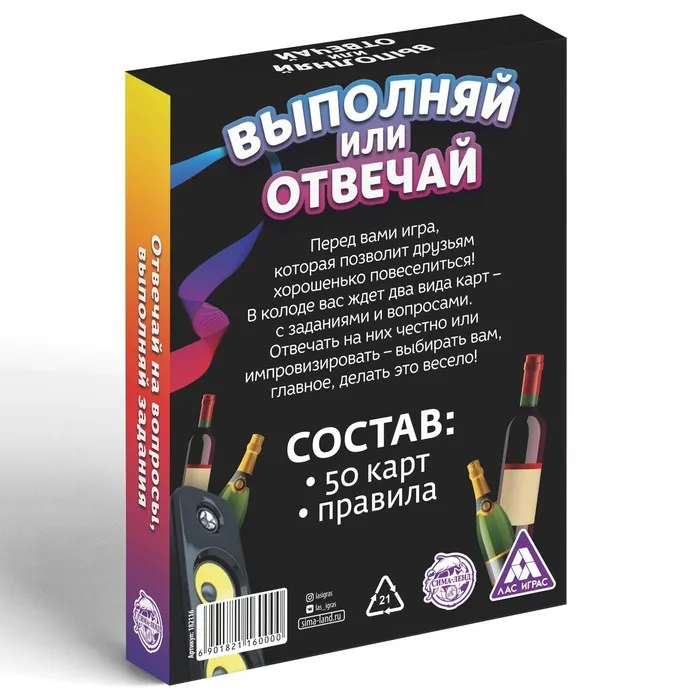Настольная игра для взрослых «Выполняй или отвечай. Веселимся от души», 50 карт, 18+ — Характеристики