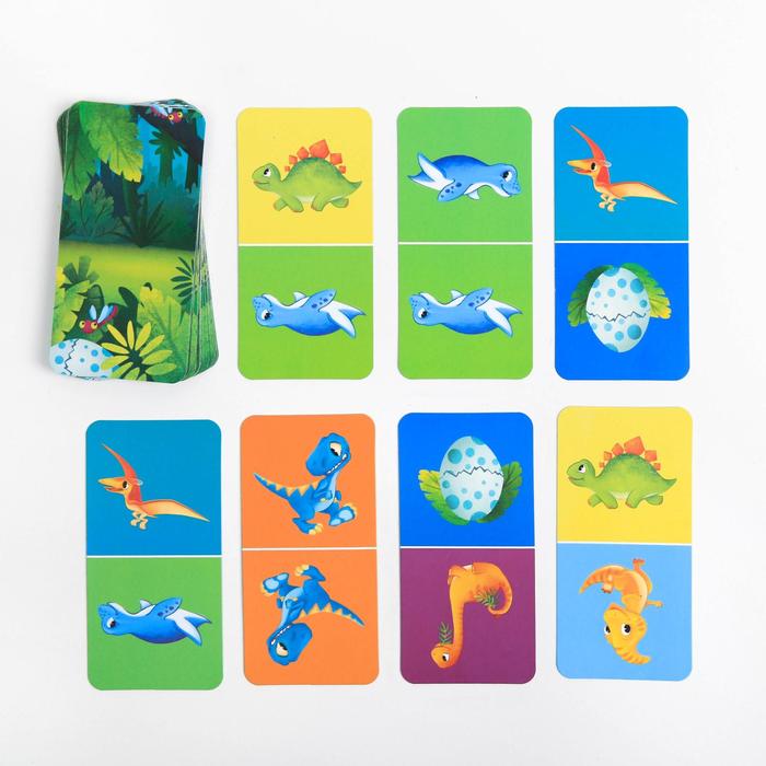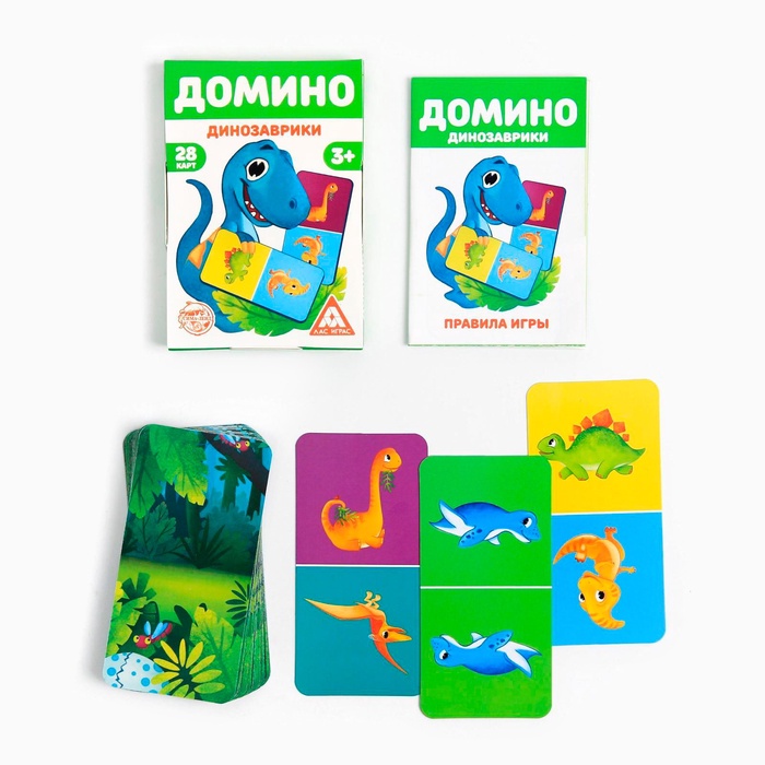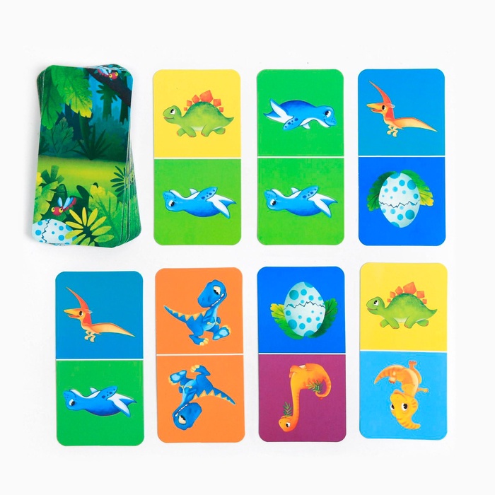 Домино — это игра, которая знакома всем. Обычно она представляет собой набор костяшек с разным количеством точек. Здесь же вместо костяшек представлены карточки, на которых изображены динозавры, поэтому играть могут даже малыши. Помимо обычного домино вы реализуете два дополнительных варианта игры: «Весёлый крокодил» и «Придумай историю».