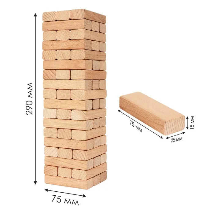 - Развивает навыки: дженга помогает развить мелкую моторику, координацию движений, стратегическое мышление и пространственное восприятие.