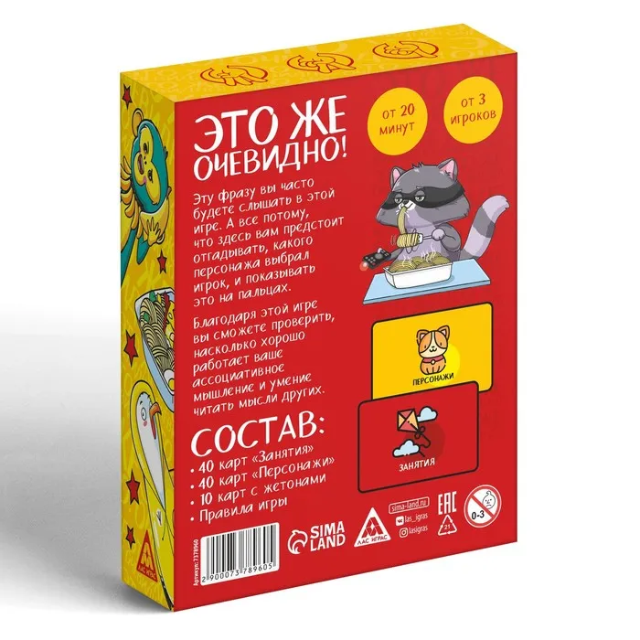 «Да это же очевидно!» — такую фразу вы часто будете слышать в этой игре. А всё потому, что здесь вам предстоит отгадывать, какого персонажа выбрал участник, и показывать это на пальцах. Благодаря игре вы сможете проверить, насколько хорошо работает ваше ассоциативное мышление и умение читать мысли других.
