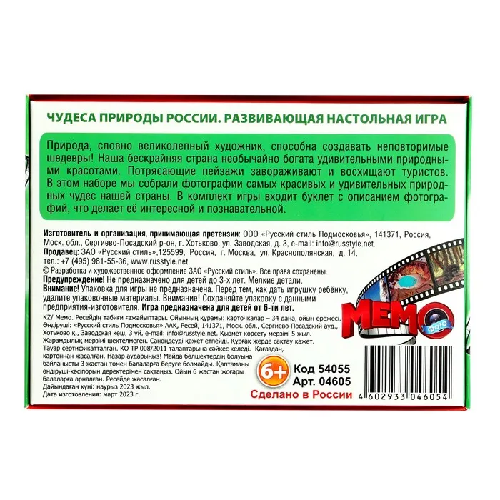 Настольная игра «Фото-мемо. Природные чудеса России», 34 карточки — Характеристики