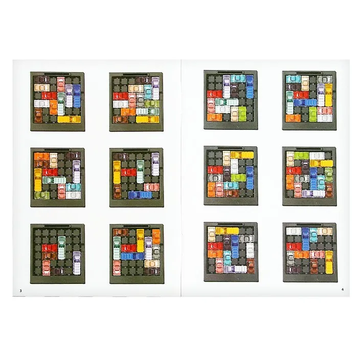 Выберите картинку-задание из книжечки и расставьте машинки по игровому полю так, как они расставлены на картинке. Далее перемещайте автомобили на парковке по прямой. Переставлять их можно только вперёд или назад до первой преграды. Как только выезд для красной машинки свободен – задание считается выполненным. Красная машинка должна выехать через выход с парковки на правой стороне игрового поля.