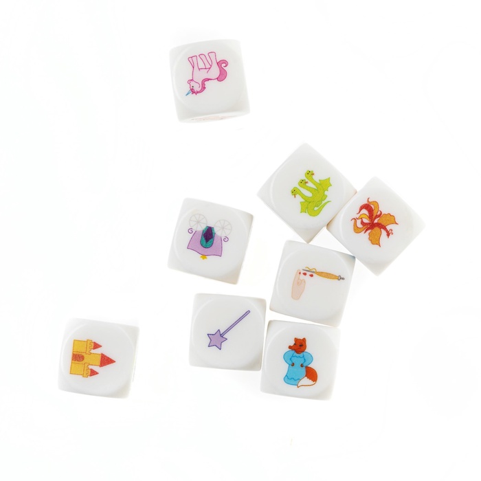 Во всех вариантах каждый игрок в свою очередь кидает кубики и, опираясь на выпавшие изображения, выстраивает сюжетную линию новой сказки. На кубики нанесены 48 картинок, которые позволяют рассказать миллион сказок, не похожих друг на друга. Сказку разрешается дополнять деталями о внешнем виде героев или об их образе жизни. Если детям будет сложно рассказывать историю, тогда взрослые могут задавать различные наводящие вопросы, которые подскажут ребятишкам необычный поворот сюжета.