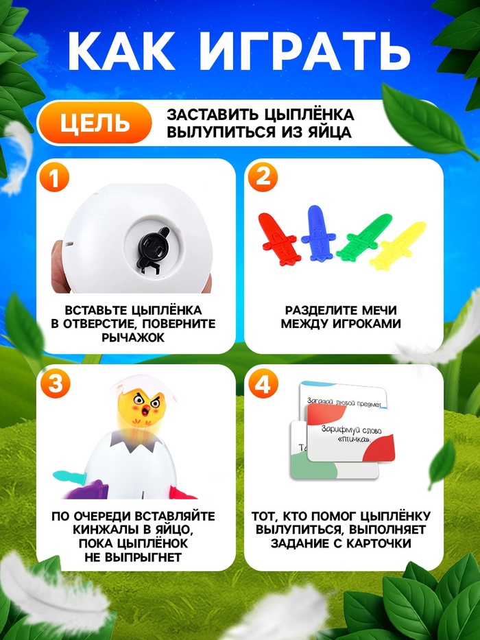 Игрок, после которого цыплёнок выпрыгнет, выполняет задание с карточки.