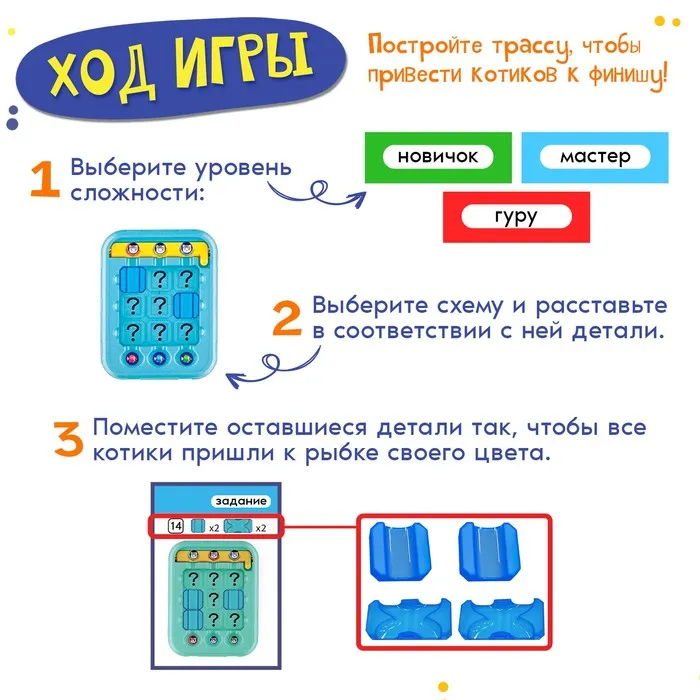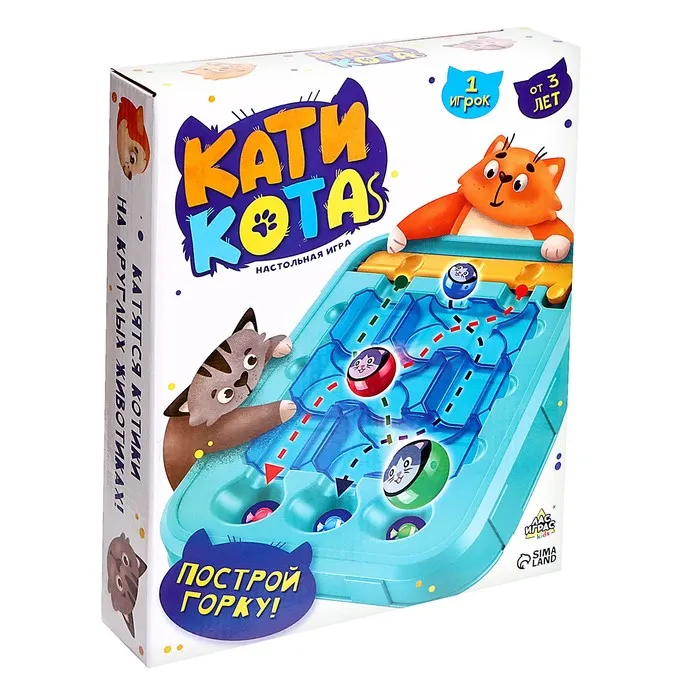 Озорные котики обожают кататься с горок! Но чтобы веселье состоялось, аттракцион нужно правильно собрать. Постройте горку и помогите котятам развлечься в настольной игре «Кати кота»!