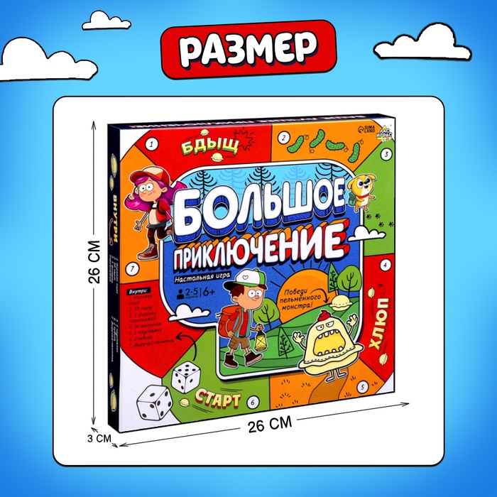 Настольная игра ходилка - бродилка для детей «Большое приключение», 2-5 игроков, 6+ — Характеристики