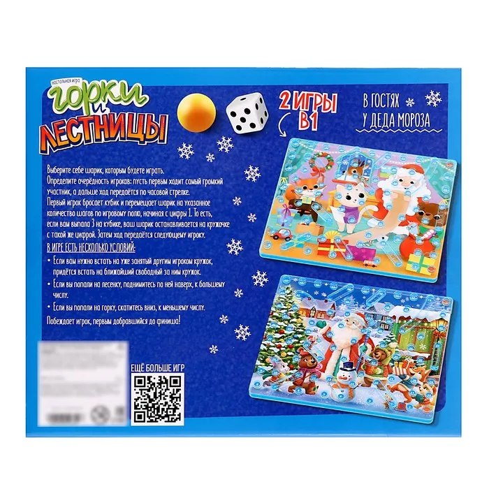 С настольной игрой «Горки и лестницы. Дед Мороз и фабрика подарков!» ребёнок прокачает логическое мышление, мелкую моторику и стремление к победе. Ведь победа в этой игре зависит не только от личных навыков, но и от везения!