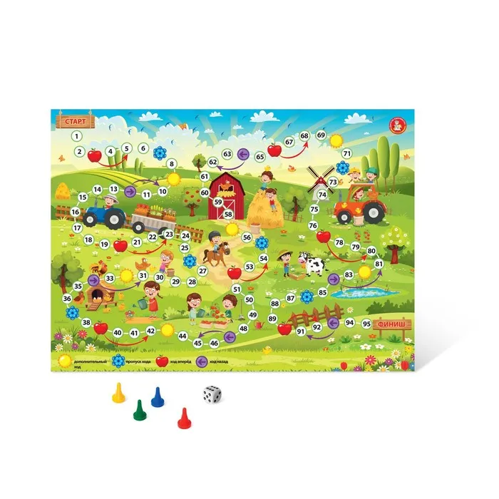 Настольная игра-ходилка «Лето в деревне» – это игра для 2-4 игроков, рассказывающая о летних приключениях: о том, как весело и с пользой провести время с друзьями, как помочь взрослым и хорошо отдохнуть. Сколько приключений ждет участников в деревенской жизни!