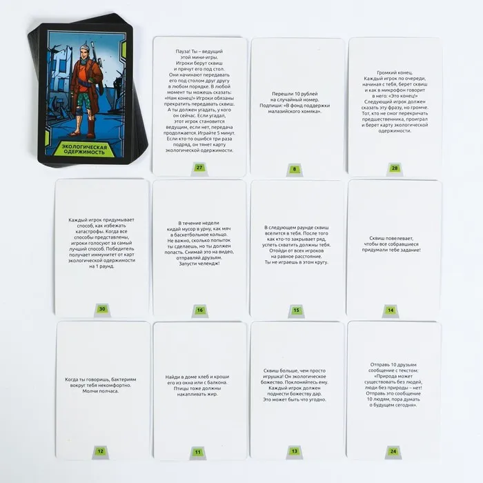 Подготовка: Игрушку-сквиш поместите в центр стола и разместите вокруг неё карты «Катастрофа» лицевой стороной вверх.